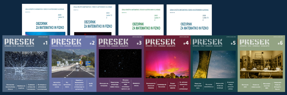 Izšla je nova številka revije OMF, ki prinaša zanimiva članka iz področij matematike in fizike in prispevek o novi knjigi in novice o občnem zboru, slavnostni akademiji, spremembi statuta in nagrajencih. Elektronska verzija (PDF) zadnje številke je dosegljiva tukaj,...