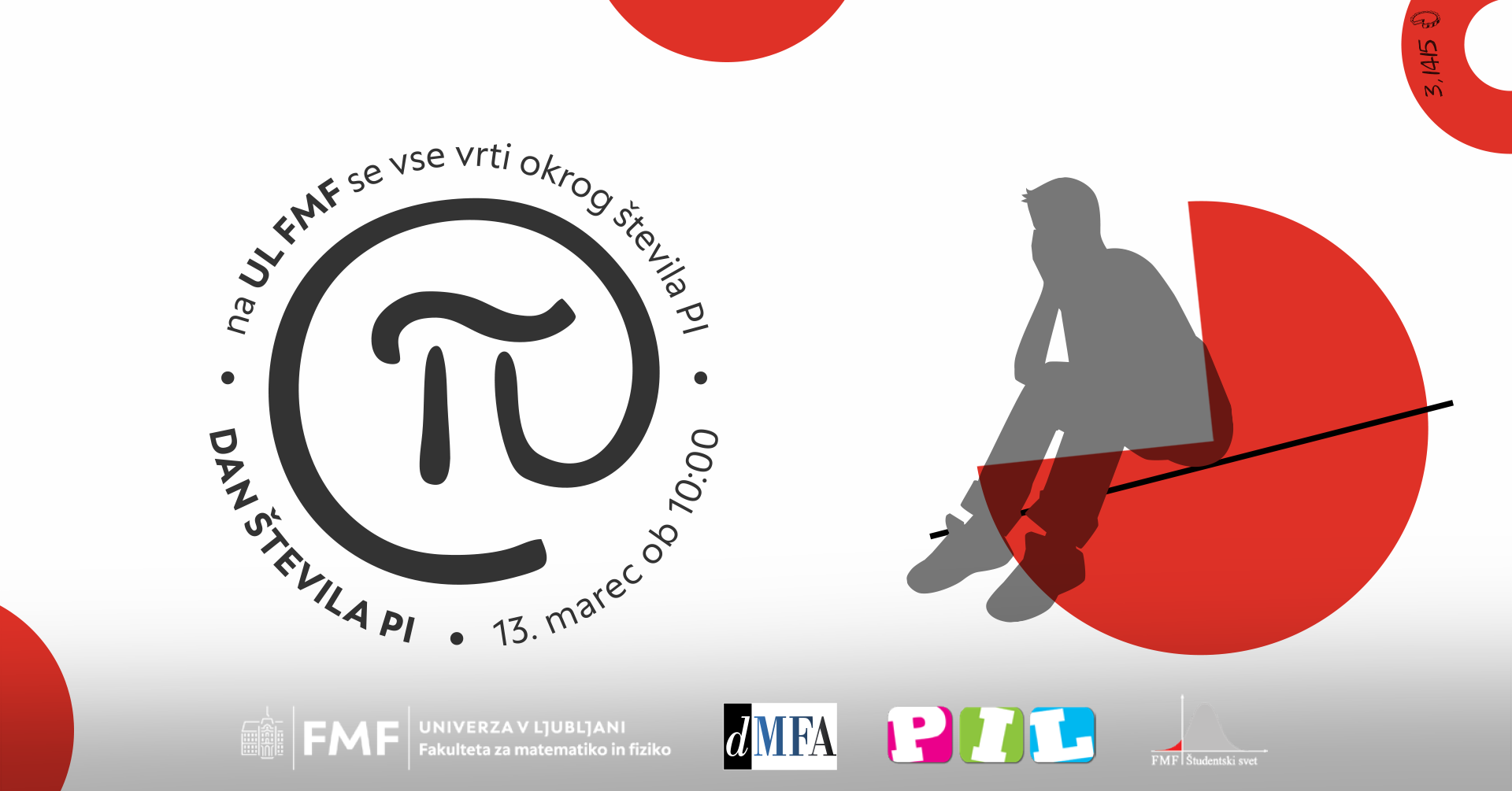 Pridružite se matematičnim navdušencem na Fakulteti za matematiko in fiziko UL, kjer bodo v petek, 13. marca 2026 ob 10:00 ponovno praznovali Dan števila PI, ko se vse vrti okoli števila PI, novega znanja in zabave! Podrobnosti programa bodo razkrite kmalu, zato si že zdaj rezervirajte datum in začnite s pripravami!